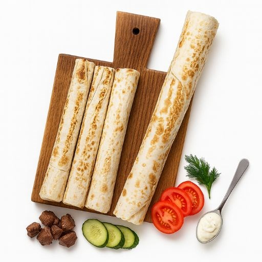 Лаваш, капуста пекинская, говядина, помидор, огурцы маринованные, соус чесночный, соус барбекю, зелень, лук красный репчатый